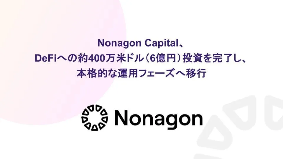 米国サンフランシスコベイエリアを拠点にするNonagon Capitalが、初めてのDeFi運用に向けて約400万米ドル(約6億円)の投資を完了したことを、10月8日に発表しました。本投資により、同社のDeFi運用は立ち上げ段階から本格的な運用フェーズへと移行します。
