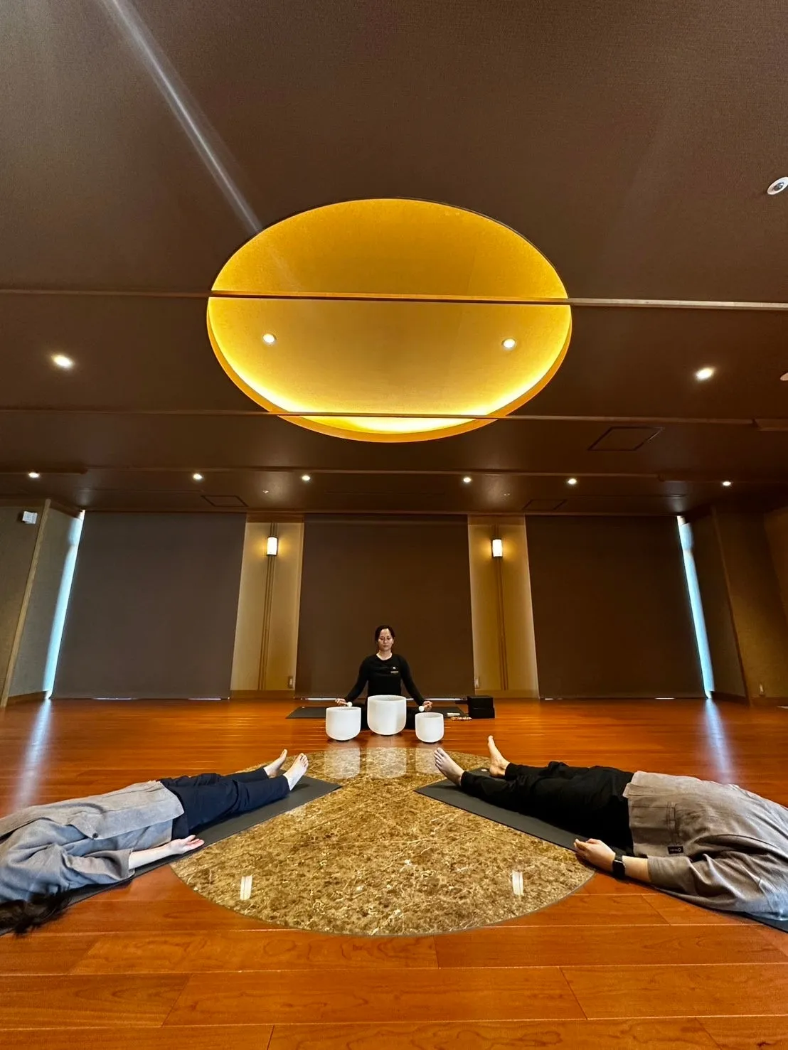 プログラムの後半では、クリスタルボウルを使ったサウンドヒーリングが行われます。この楽器は水晶でできており、倍音を奏でることで体内のケイ素と共鳴し、細胞の活性化を助けます。穏やかな音色が長く響くことで、自律神経が安定し、深いリラックス状態を促します。