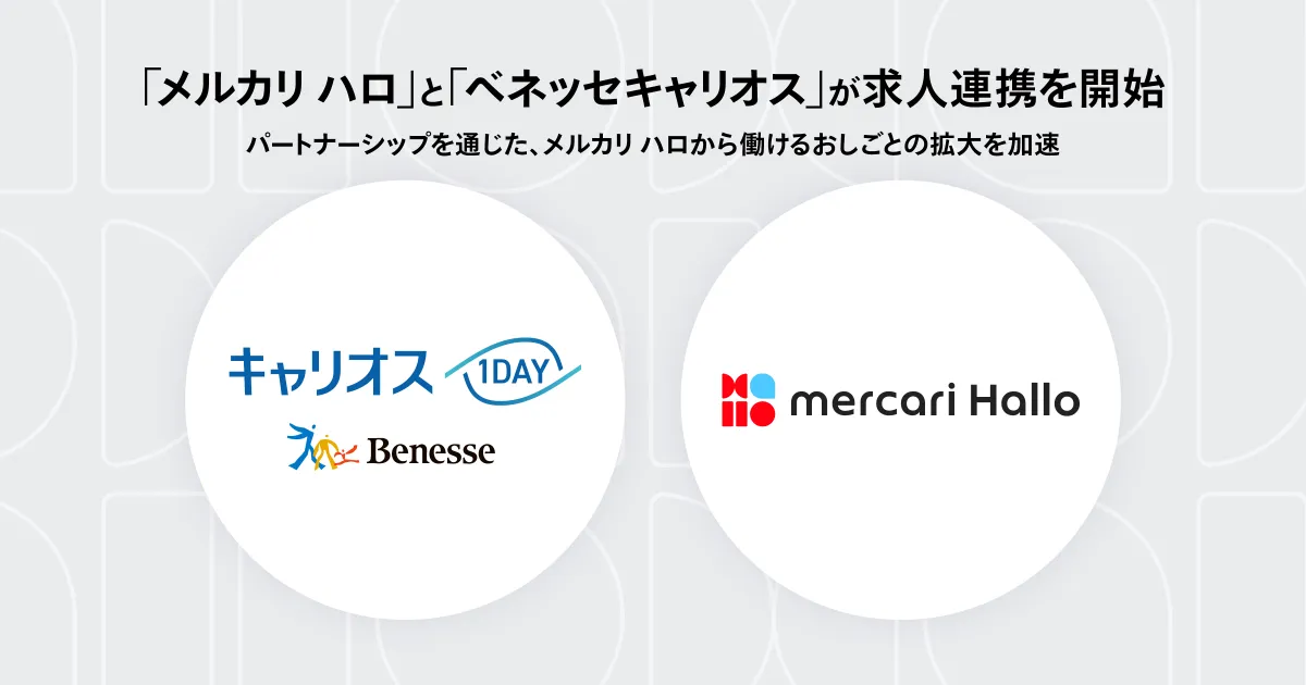 株式会社メルカリが、スキマバイトサービス「メルカリ ハロ」とベネッセグループのベネッセキャリオスとの求人連携を発表しました。この連携により、ベネッセキャリオスが運営するスキマバイトサービス「キャリオス1DAY」の求人が、「メルカリ ハロ」で簡単に見つけられるようになります。これにより、クルー(働き手)は「メルカリ ハロ」からより多くの働き先に応募することができるようになります。