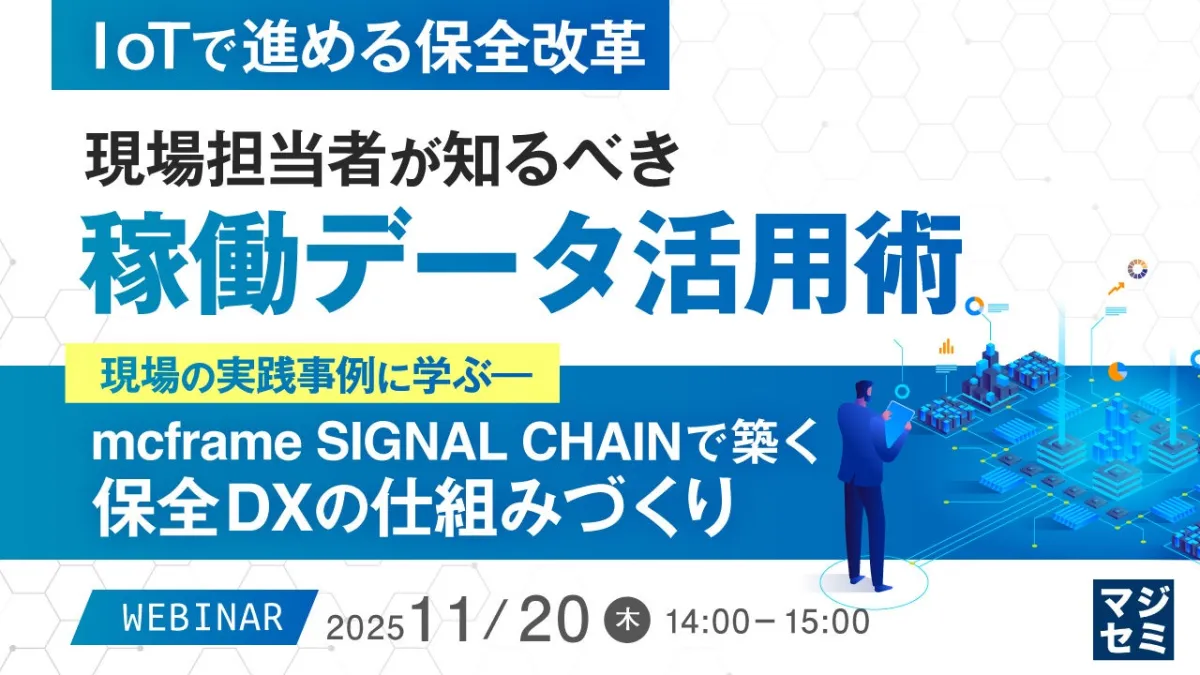 ウェビナーでは、製造・保全現場向けのパッケージ「mcframe SIGNAL CHAIN」と、レガシー設備からのデータ取得を支援する「WORKFRONT」を組み合わせた実践事例が紹介されます。この二つのシステムを通じて、どのように稼働データが収集され、分析され、現場での判断に結び付けられるのか、具体的な成功事例を交えて説明されます。参加者は、必要なデータの特定から視覚化、分析、改善活動への活用までの一連の流れを理解することができます。