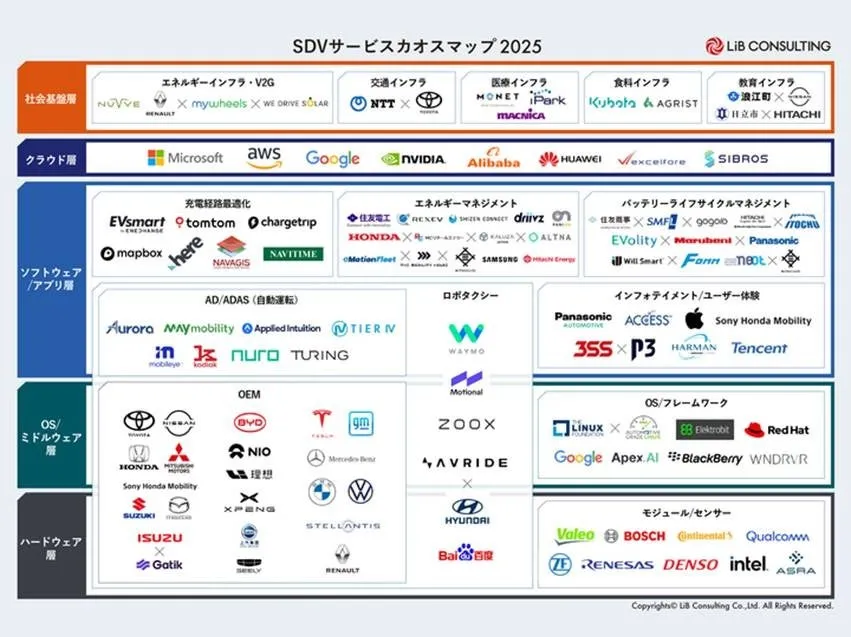 株式会社リブ・コンサルティングは、モビリティとエネルギーを中心にしたコンサルティングサービスを提供する企業です。最近、同社は「SDVサービスカオスマップ2025」を発表し、自動車産業に携わる110社以上のプレイヤーを五つのカテゴリーに整理しました。このマップは、自動車業界が今直面している大変革の影響を受けており、特に「ソフトウェア・デファインド・ビークル(SDV)」に関する新たな動向を反映しています。