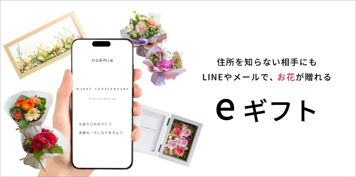 フラワーギフトショップ「noemie(ノエミ)」が、今までの贈り物の概念を覆す、革新的なeギフトサービス『AnyGift(エニーギフト)』を導入しました。このサービスは、相手の住所を知らなくてもSNSやメールで手軽にギフトを贈ることができるため、誕生日やお祝いの場面で大きな変化をもたらすことでしょう。