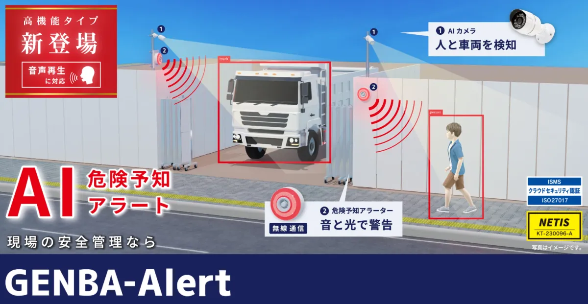 「GENBA-Alert」は、建設現場をはじめとした多様な屋外作業環境での事故防止を目的とするAIシステムです。特に車両の入退場時の危険を軽減するために設計されており、従来の安全対策における様々な課題を解決することを目指しています。特設サイトには、サービスの詳細情報や紹介動画が掲載されており、利用者にとって利益をもたらす内容が盛り沢山です。