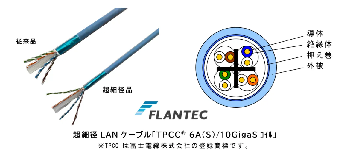 SWCCグループの冨士電線がこのたび、業界で初めてとなる超細径LANケーブル『TPCC® 6A(S)/10GigaSコイル』を発売しました。これは、Cat.6A規格に対応し、10Gbpsでの超高速伝送を可能にする画期的な製品です。この新たな技術は、特に近年増加しているデータセンターやスマート工場、オフィスにおけるクラウド利用の拡大を背景としており、今後の通信基盤の進化を促進するものと思われます。