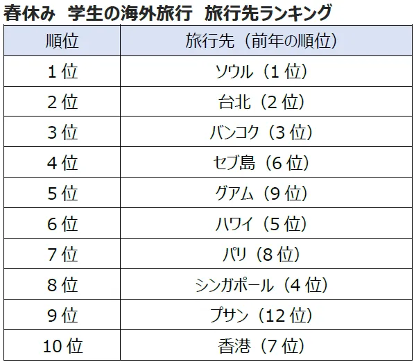 調査は、2026年2月12日に実施され、対象はHISを通じて申し込みを行った学生に絞られている。予約対象は、HISのツアーやダイナミックパッケージ、航空券に限られ、宿泊のみは含まれていなかった。キャンセル数を除いた予約人数に基づき、データが算出された。