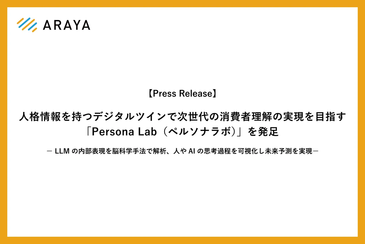 株式会社アラヤが発表した「Persona Lab(ペルソナラボ)」は、デジタルツイン技術に基づく消費者理解の新たな可能性を切り開くプロジェクトです。この取り組みは、企業が消費者の深層心理を理解し、より効果的なマーケティングや製品開発を実現することを目指しています。