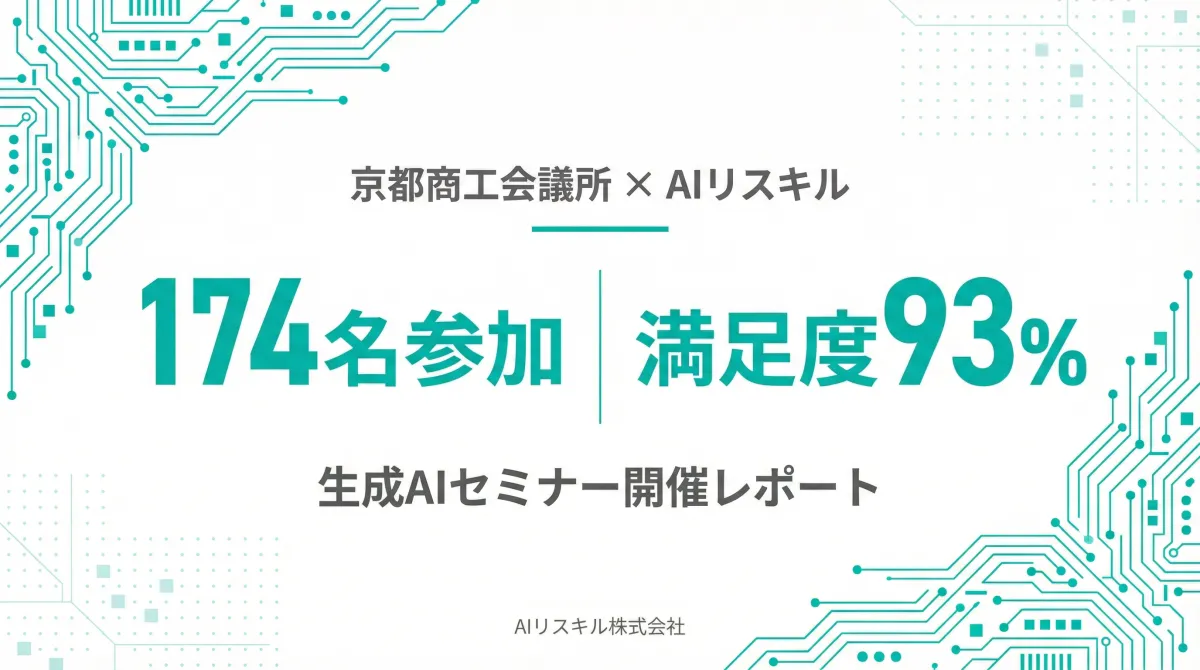 2025年12月3日、水曜日、京都商工会議所で開催された第4回IT活用セミナーは、174名という多くの参加者を集め、「多様化する生成AIの選び方と安全な活用法」をテーマに盛況のうちに終了しました。セミナーは対面参加の45名に加え、オンラインで130名以上が視聴するという形で行われ、参加者の93%が満足するという高評価を得ています。