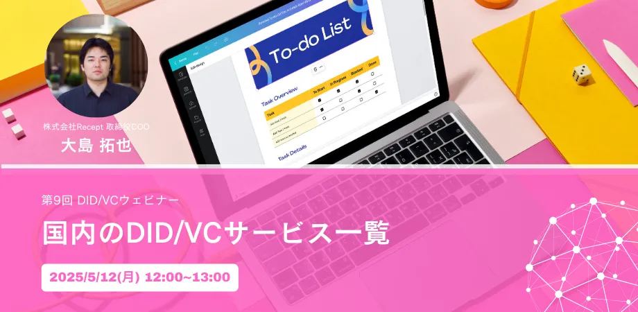 2025年5月12日(月)、株式会社ReceptがDID/VCに関するウェビナーを無料で実施します。このウェビナーでは、DID/VC(Decentralized Identifier / Verifiable Credentials)技術に関して最新の情報やユースケースについて詳しく解説します。