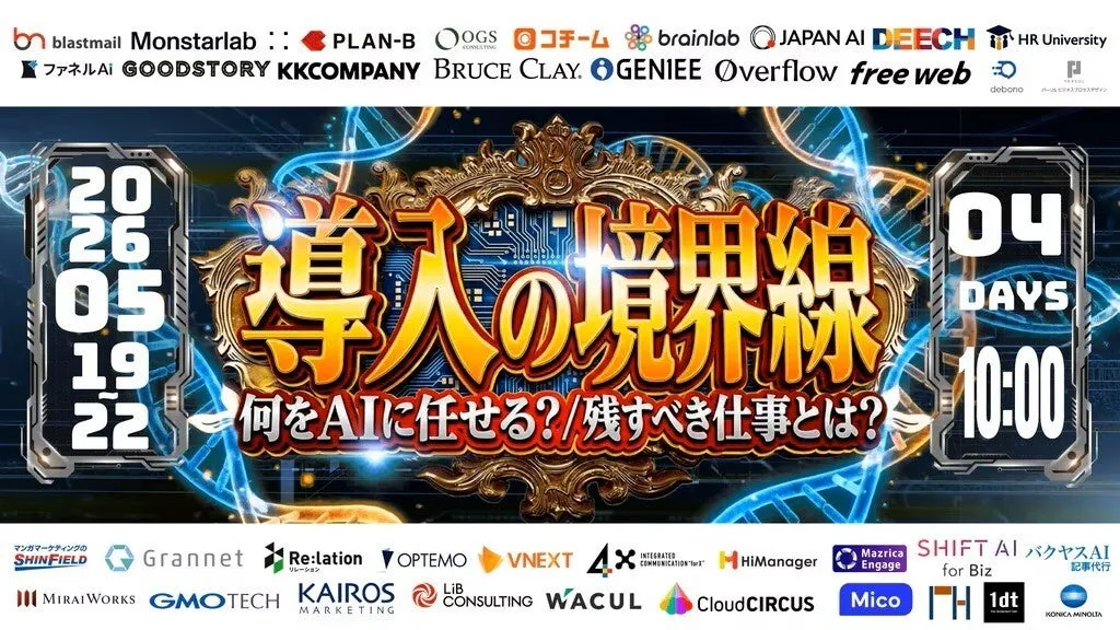株式会社インゲージは、マーケメディアが主催するウェビナー「【導入の境界線】 ~何をAIに任せる? 残すべき仕事とは?」に登壇します。開催日は2026年5月19日(火)から22日(金)にかけてで、オンラインにて実施します。