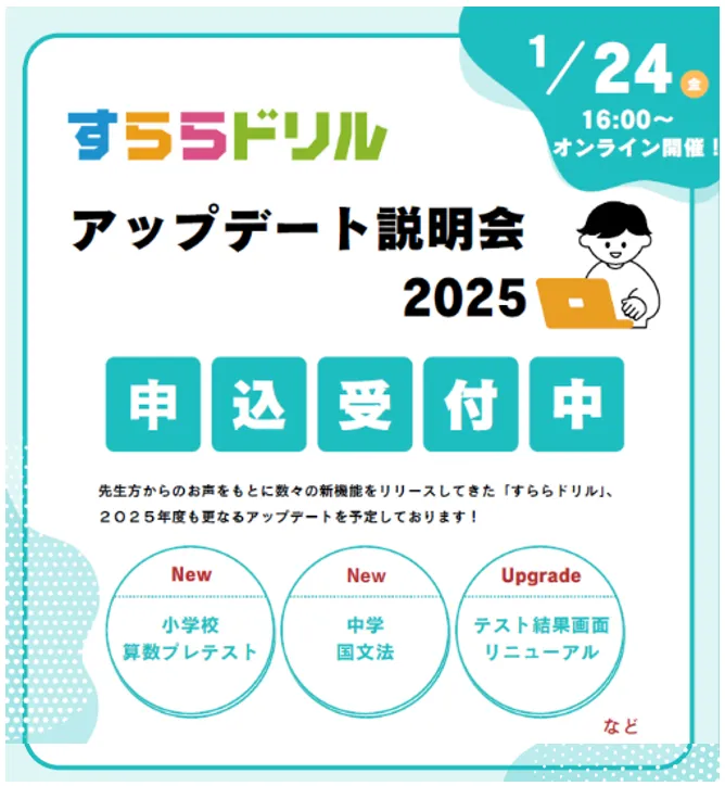 2025年に向けた新機能を紹介!「すららドリル」説明会のご案内