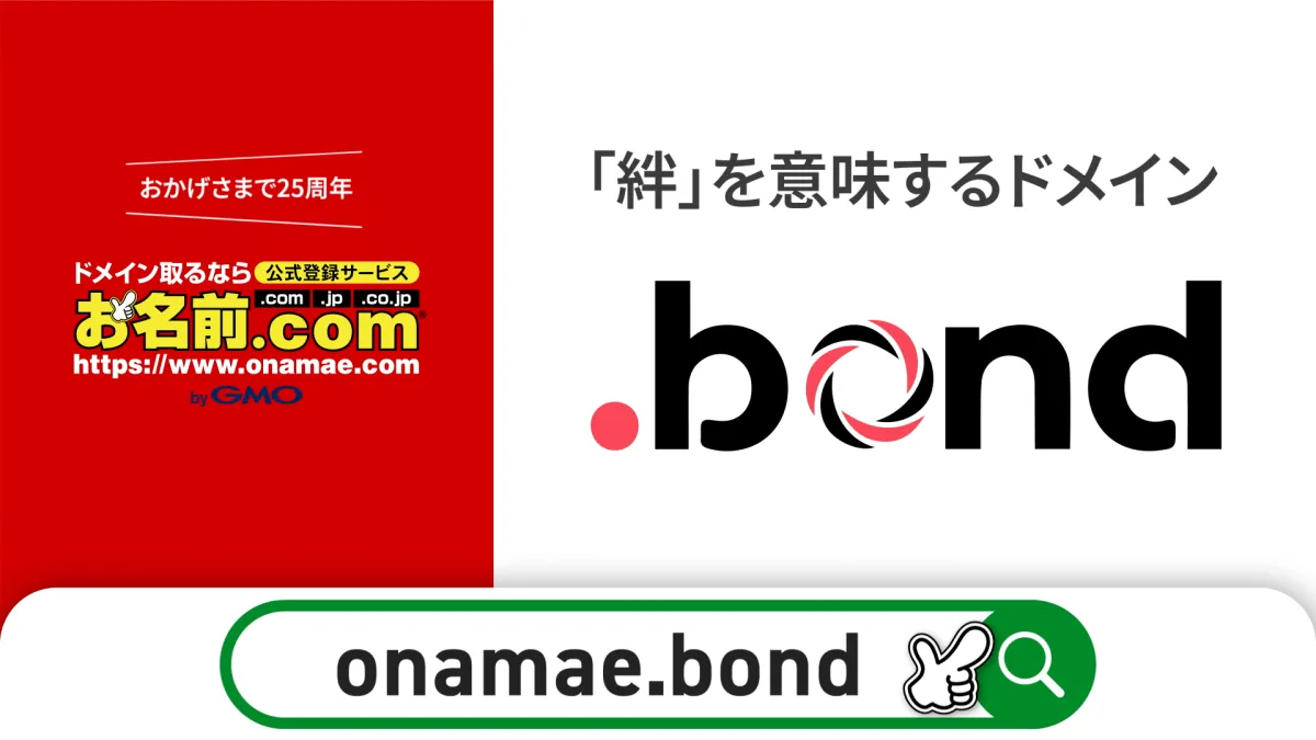 GMOインターネット株式会社が提供する「お名前.com byGMO」が、2024年9月にサービス提供開始から25周年を迎えるのを記念して、特別なCMを東京の渋谷スクランブル交差点で放映することが決まりました。このCMでは、新しいドメイン「.bond」を紹介し、未来のつながりを表現します。