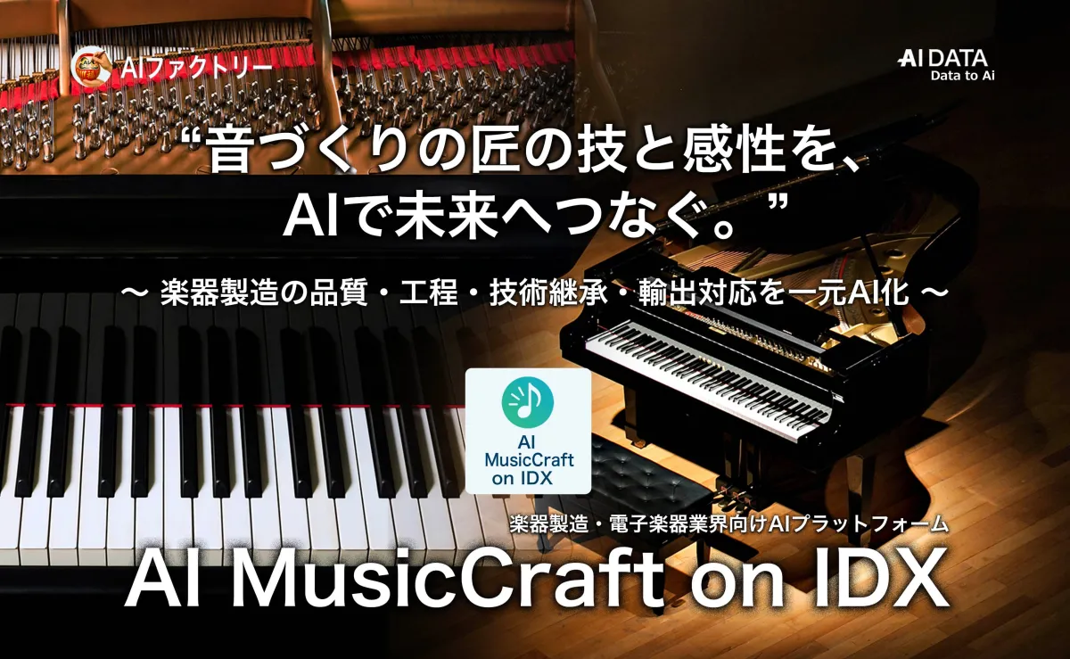 AIデータ株式会社が、音楽業界の製造プロセスに革新をもたらす新しいAIソリューション『AI MusicCraft on IDX』を発表しました。このプラットフォームは、アコースティック楽器や電子楽器、さらには管弦打楽器などさまざまな楽器の製造業者やブランド企業を対象に設計されています。