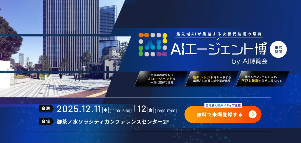 「AIエージェント博」は、AI業界における最新情報を提供するポータルメディア「AIsmiley」によって開催され、AIの最新技術や製品が一堂に会するイベントです。特に、AIが実装段階に入った現在、AIエージェントの一般化が進んでおり、企業が実際にどのようにAIを導入し活用しているのかを知る良い機会となります。