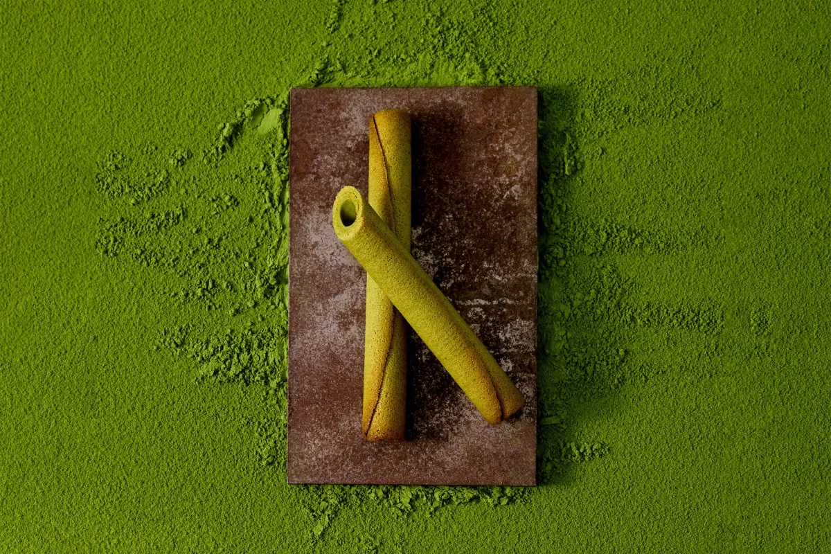 『シガール オゥ マッチャ』の製造過程では、合組という特別な工程を採用しています。茶師が香りやコク、色味のバランスを見極めながら、数種類の茶葉をブレンドし、抹茶の最適な特性を引き出しました。このようにして生み出された抹茶は、シガールのバター生地との融合を実現し、新たな美味しさが生まれました。