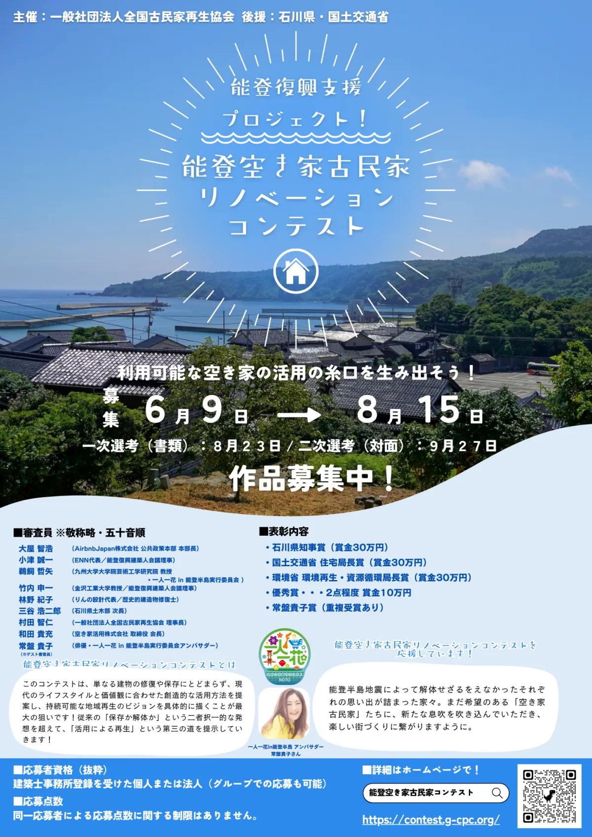 この「能登空き家古民家リノベーションコンテスト」を通じて、ぜひ新しいアイデアを持ち寄り、地域再生の未来を一緒に考えてみませんか?たくさんの応募をお待ちしております。