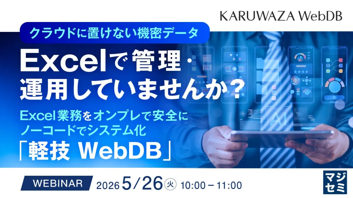 このような現状を打破するために、私たちは「ノーコードWebデータベース 軽技 WebDB」を活用した新たなソリューションを提案します。このツールを使えば、既存のExcelデータを簡単に取り込み、オンプレミス環境でも安全にデータを一元化できます。ドラッグ&ドロップで操作でき、ブラウザ上で必要な情報の確認や更新、集計が簡単に行えることが特徴です。