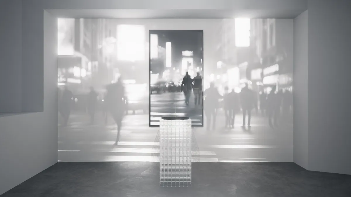 光と映像によって意識の深層に眠る記憶を浮き彫りにするこのインスタレーションは、観客の内面と外界を行き来する体験を提供します。作品内で光は外界との接点となり、映像は記憶や感情を呼び起こします。光が消え、映像が現れる瞬間、観客は自らの内面に引き寄せられます。AIによって再編集された普遍的な風景が、鑑賞者各自の記憶や感情を引き起こし、新たな体験を提供します。この作品は、自己、他者、AIと人間の境界を曖昧にすることにより、私たちの生活や感情の関わりを探ります。