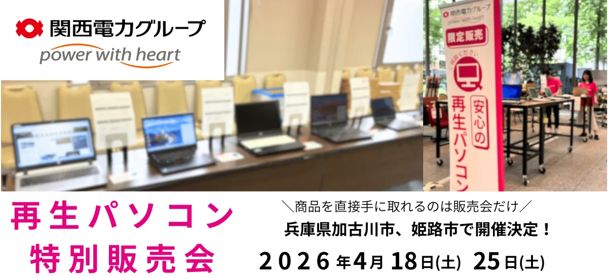 2024年4月、兵庫県加古川市と姫路市で特別な再生パソコンの販売会が開催されます。このイベントは、関西電力グループが運営するPC nextが主催しており、使用済みパソコンを再生し、環境にも優しく、お財布にもやさしい商品を提供することを目的としています。