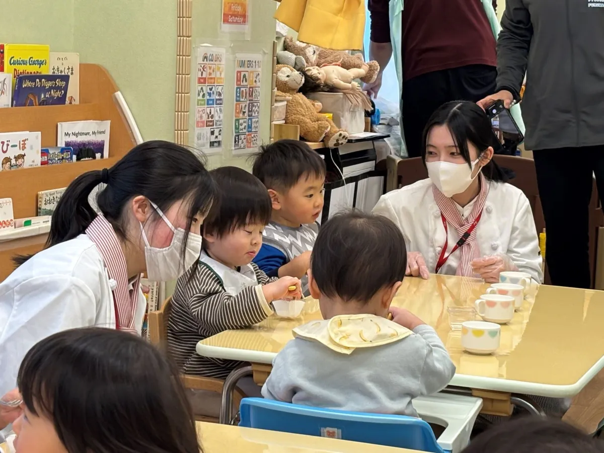 今回のおやつ作りに携わったパティシエ学科の学生、冨樫美保さんは、「節分をテーマにした鬼の練り切りを作りました。見た目を楽しんでもらうために、様々な表情の鬼を工夫しました。あんこを初めて食べる子どももいるかもしれないと不安でしたが、みんなが美味しそうに食べてくれたので、とても嬉しかったです」と感想を語りました。彼女は今後、多くの人々に喜ばれるお菓子作りに努めたいと熱い思いを述べています。