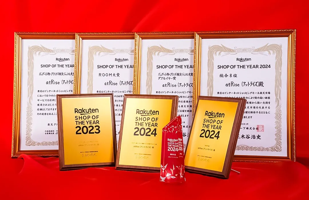 この賞は楽天市場の約57,000店舗の中から、顧客からの投票数や売上、成長率などをもとに選ばれるもので、上位に入るのは極めて難しい競争です。ライズクリエイションは、前年度に引き続き「バッグ・小物・ブランド雑貨部門」で大賞を獲得し、さらにショッピングSNS ROOMの評価も受け「ROOM賞 大賞」を受賞。これにより、2年連続での栄誉を得ました。