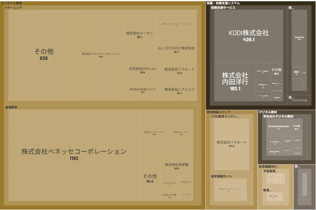 このように分類された情報群は、業界構造と各企業の立ち位置を明瞭に示し、EdTech業界の動向や競争状況を理解するのに役立ちます。
