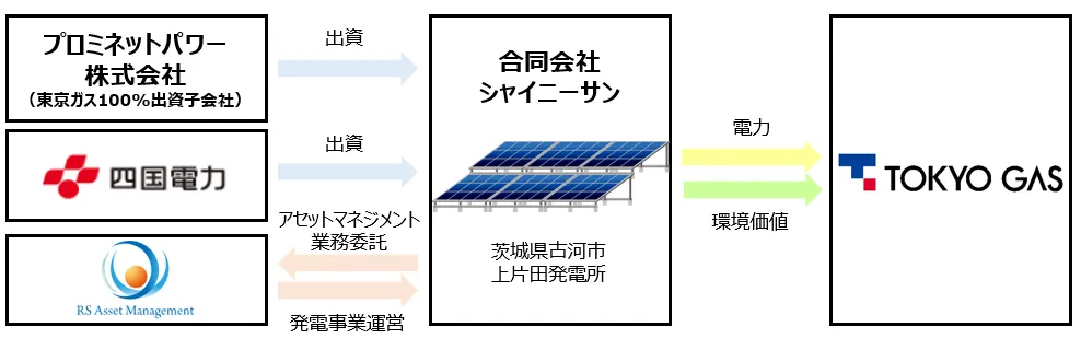 2023年10月、東京ガスと四国電力が共同で出資し、茨城県古河市において新たな太陽光発電事業を開始した。このプロジェクトは、アール・エス・アセットマネジメントが組成した合同会社シャイニーサンによるもので、両社が共同で出資する形で進められている。