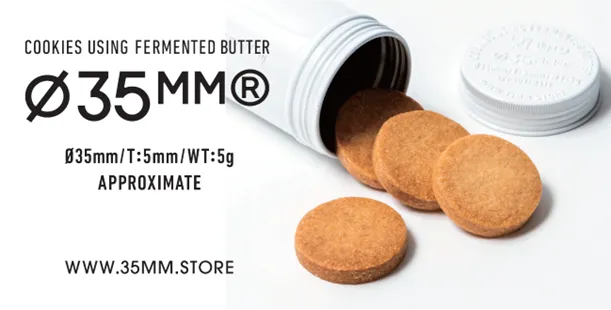 「35MM」は、直径35mmのクッキーを個性的なデザイン缶に詰めたスイーツブランドです。厳選されたフランス産小麦とベルギー産発酵バターを使用し、職人が一枚一枚丁寧に焼き上げています。そのこだわりから生まれる風味豊かで心地よい食感は、一口食べるだけでリッチな気分にさせてくれます。