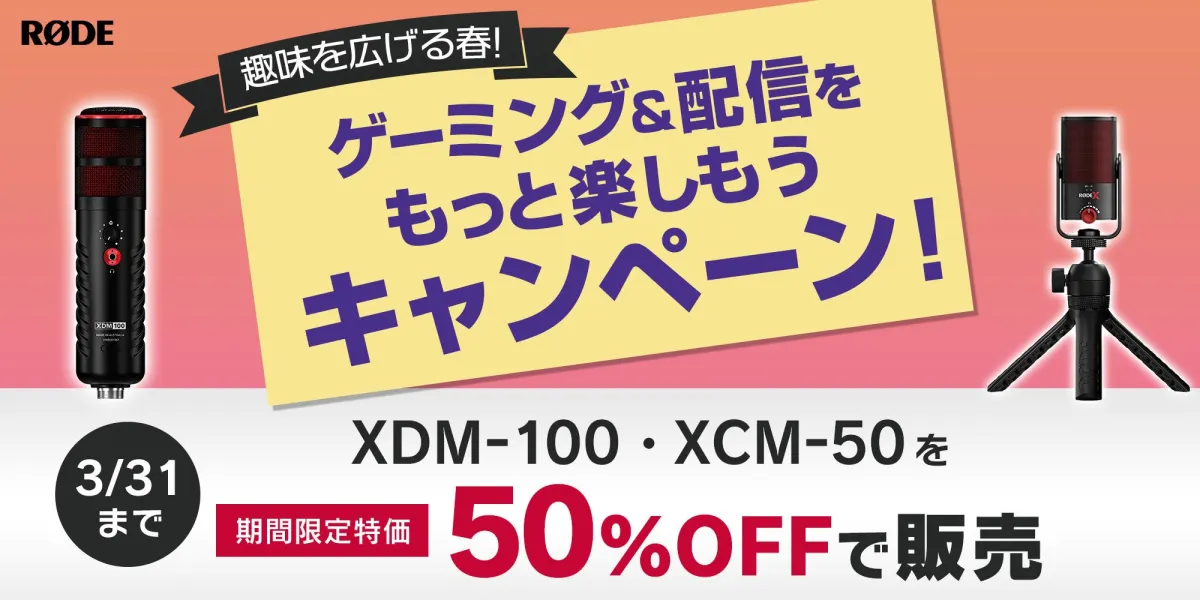 春の訪れと共に、新たな挑戦を始めるには絶好のタイミングです。RØDE Microphones(ロード マイクロフォンズ)が、2025年2月19日から3月31日までの期間限定で「趣味を広げる春!ゲーミング&配信をもっと楽しもうキャンペーン」を実施します。このキャンペーンでは、同社の人気ゲーミングマイク「XDM-100」と「XCM-50」が特別価格で提供されるため、気軽に新しい環境を整えるチャンスです。