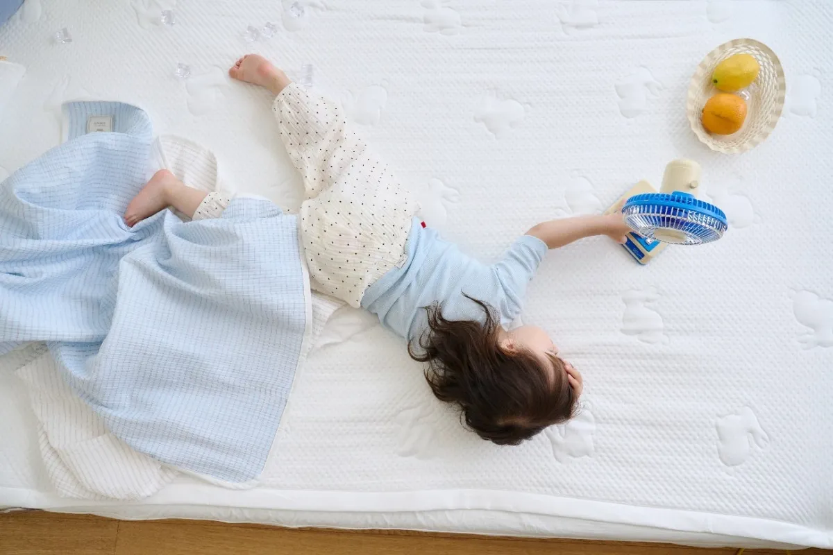 赤ちゃんは皮膚が薄く、体温調節が難しいため、特に暑い季節には快適な眠りを妨げられることがあります。「クールマット」は、赤ちゃんの体温を効果的に逃がしながらも、室温に応じて自然な体温調節を助けるようデザインされています。この特性により、暑い環境下でも快適に使用できるだけでなく、冷暖房の効いた室内でも威力を発揮します。