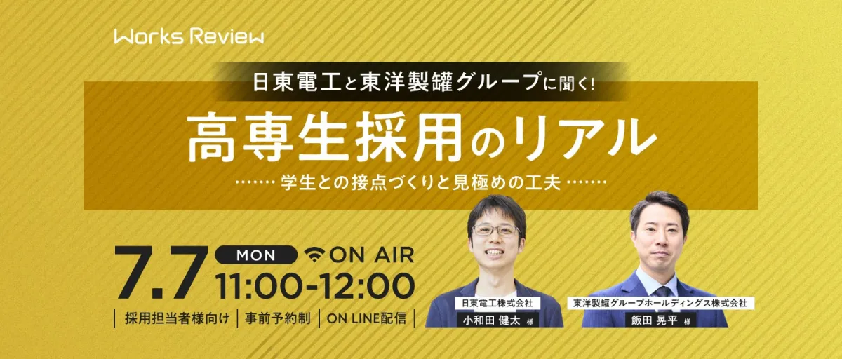 2025年7月7日(月)、株式会社ワークス・ジャパンが主催するオンラインフォーラム「高専生採用のリアル」が開催されます。このセミナーは、企業の人事担当者や人材開発担当者を対象に、高専生の採用に関する最新の情報を提供する機会です。