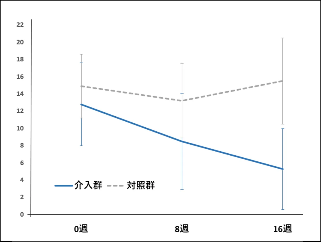 研究の結果、介入群では症状評価のスコアが著しく低下しました。実際、PDSS評価で見ると、介入群は平均12.8点から5.4点に改善し、80%の患者が症状の改善を報告しました。