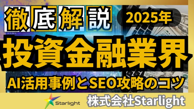 株式会社Starlightは、このたび「2025最新版 投資・金融業界のSEOトレンドレポート」を発表しました。デジタルマーケティングの進化に伴い、特に投資・金融業界においてはSEO戦略がますます重要視されています。本レポートでは、 SEOを駆使して顧客を効果的に引き寄せるための最新事例やノウハウが満載です。さらに、信頼性を高める情報提供方法や収益向上に向けた具体的戦略についても詳細に解説しています。