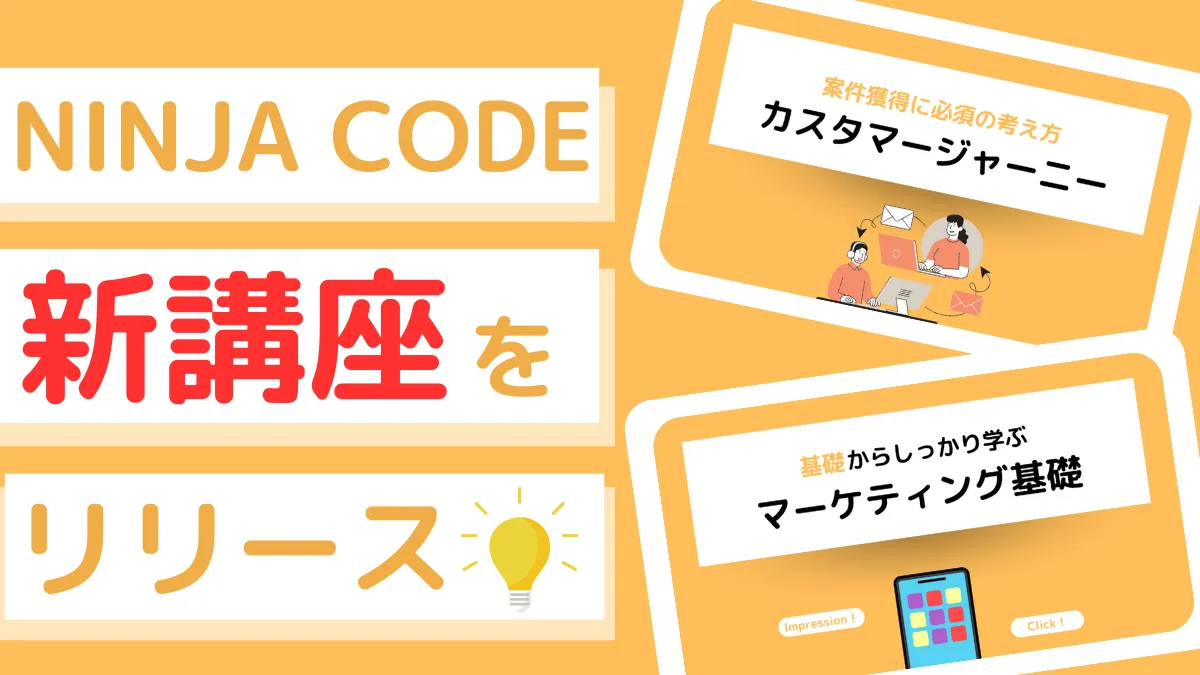「NINJA CODE」の設立の根底には、「市場価値の高い人材を育成する」という理念があります。それを実現するために、幅広いスキルが求められる現代においてはプログラミングだけでなくマーケティングも必要不可欠です。その結果、マーケティング講座が新たに加わりました。