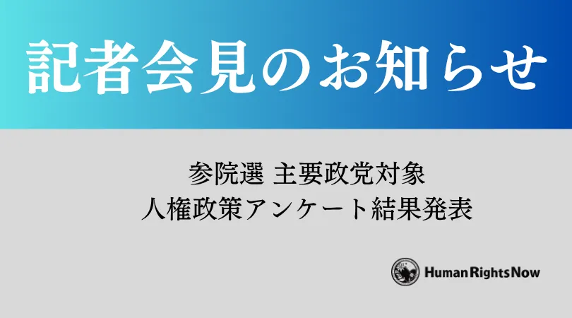2025年7月14日、国際人権NGOヒューマンライツ・ナウ(HRN)が、今年の参議院選挙に向けて実施した各政党の人権政策に関するアンケートの結果を公表する記者会見を開催します。この会見は、オンラインで行われる予定で、当日は専門家や弁護士が参加し、具体的な調査結果についての解説とともに、政策の重要性についても触れることが予定されています。