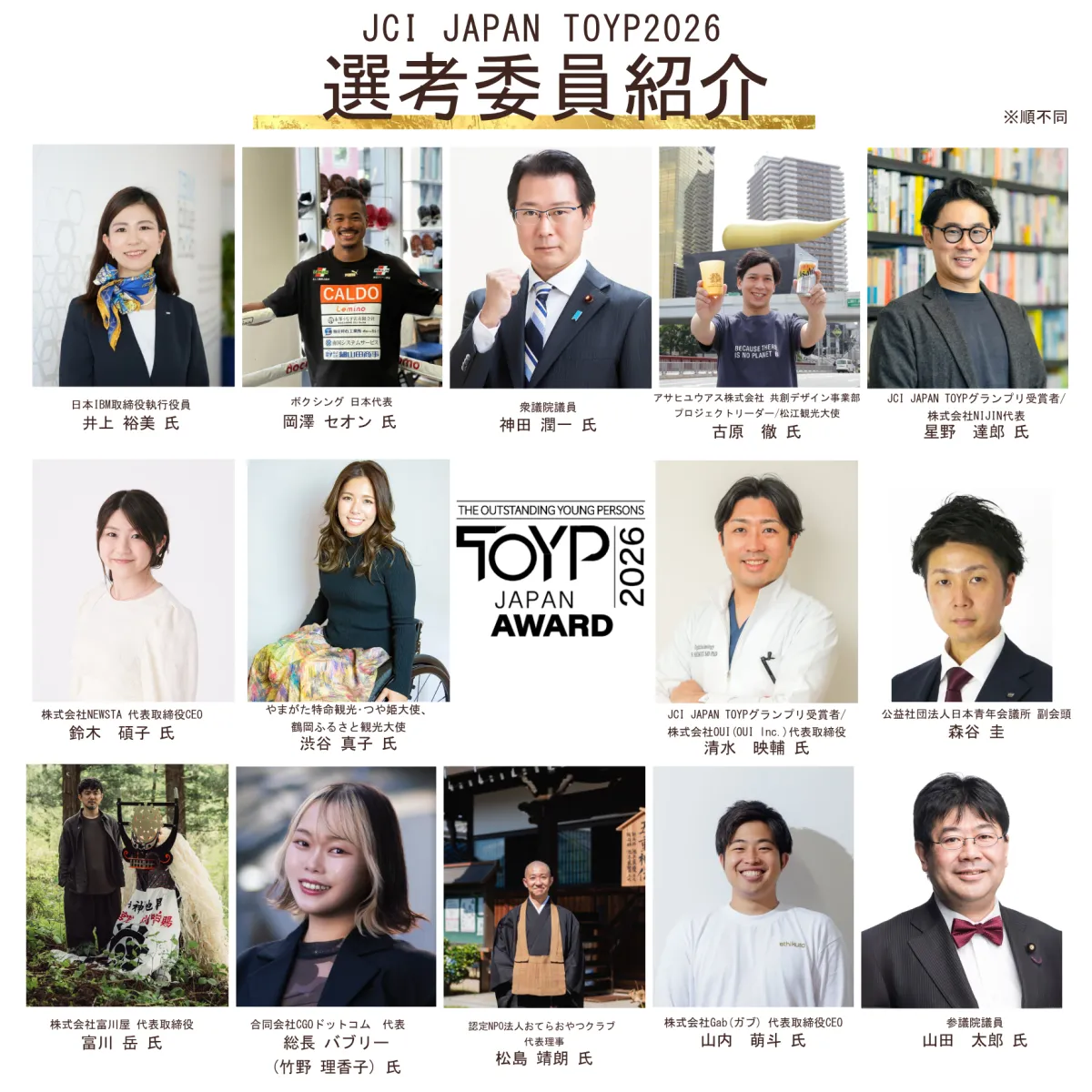 選考委員には、著名な受賞者や各界のリーダーが揃いました。具体的には、以下の14名が選ばれています。(順不同)