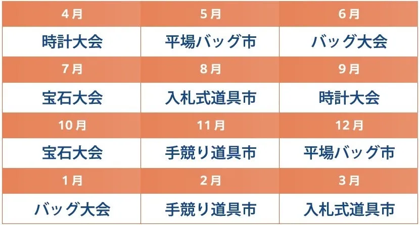 この度の「年間キャンペーン」では、2026年4月から2027年3月にかけて毎月開催される時計大会やバッグ大会などで、販売手数料の割引サービスを提供します。特に、4月25日の時計大会においては、通常最大3%の販売手数料がかかるところ、ロレックス全品に関しては一律1%に引き下げる特別な割引があります。これにより、参加者はより多くの利益を享受できることが期待されます。