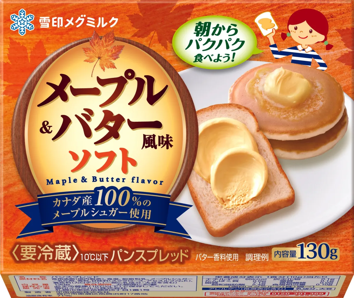 2026年3月1日、雪印メグミルク株式会社が発売する「メープル&バター風味ソフト」には、カナダ産の100%メープルシュガーが使用されています。この商品は、メープルの甘い香りを手軽に楽しめるパン用スプレッドです。特に子どもたちに人気のフレーバーであり、食パンやホットケーキに添えて楽しむことができます。