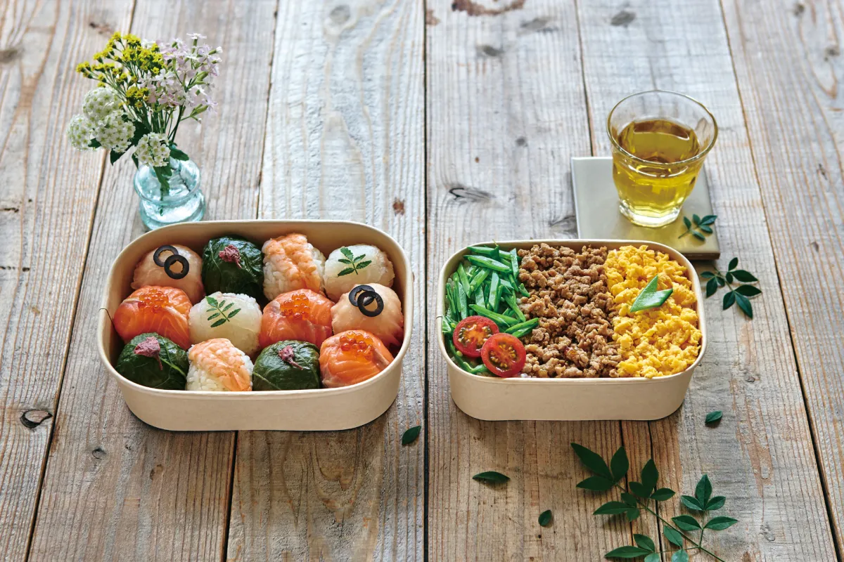 - - 洗練されたデザイン: 竹ならではの自然な質感を活かし、料理の美しさを引き立てるモダンなデザインを実現しています。機能美と環境配慮が融合した容器です。