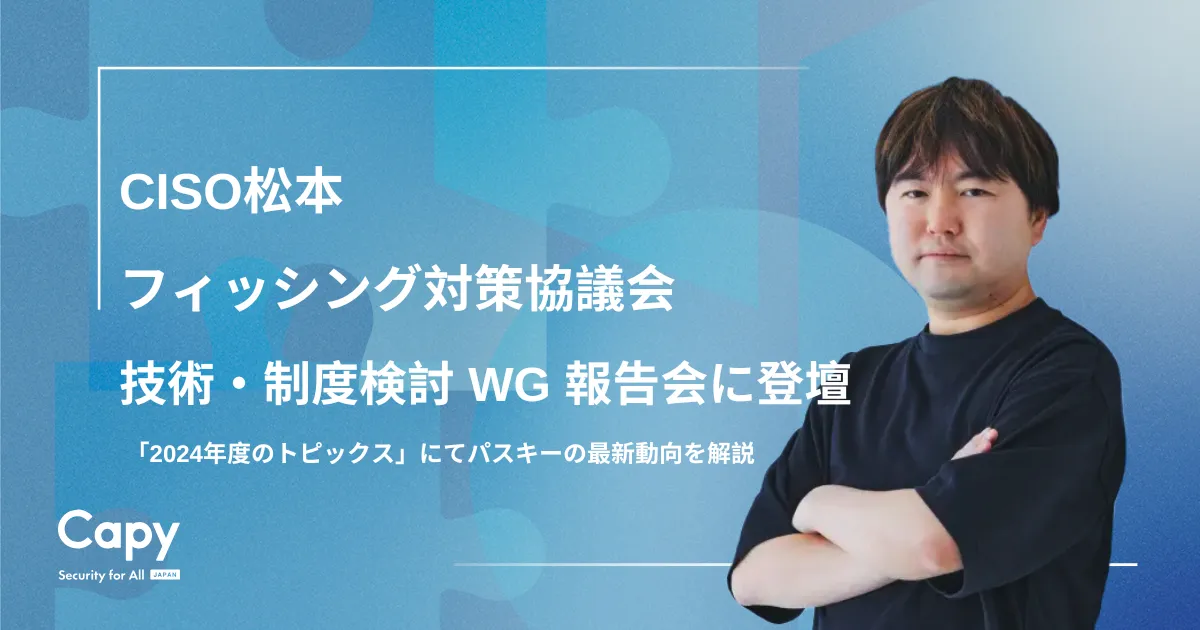 Capy株式会社は、東京都千代田区を本拠地とし、代表取締役の岡田満雄氏が率いる企業です。その社内で、サイバーセキュリティの重要性を理解した技術者たちが日々様々な対策を提案しています。この度、同社のCISO(最高情報セキュリティ責任者)である松本氏が、フィッシング対策協議会が主催する「フィッシング対策協議会 技術・制度検討 WG 報告会」において講演を行います。