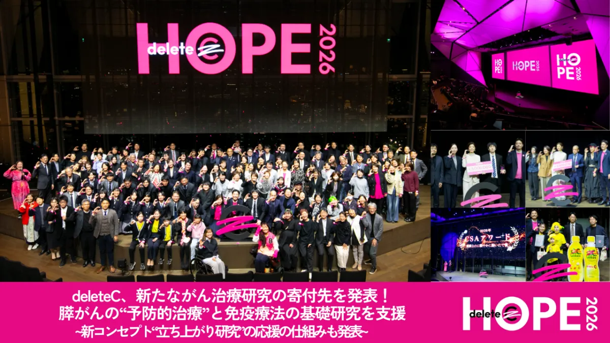 認定NPO法人deleteCは、がん治療における新たな研究支援の取り組みを発表しました。2026年2月3日、虎ノ門ヒルズ ステーションタワー TOKYO NODE HALLにて行われた第7回授賞式「deleteC 2026 -HOPE-」では、難治がんの膵がんに特化した予防的治療と近年注目を集めている免疫療法の基礎研究を支援することが発表されました。