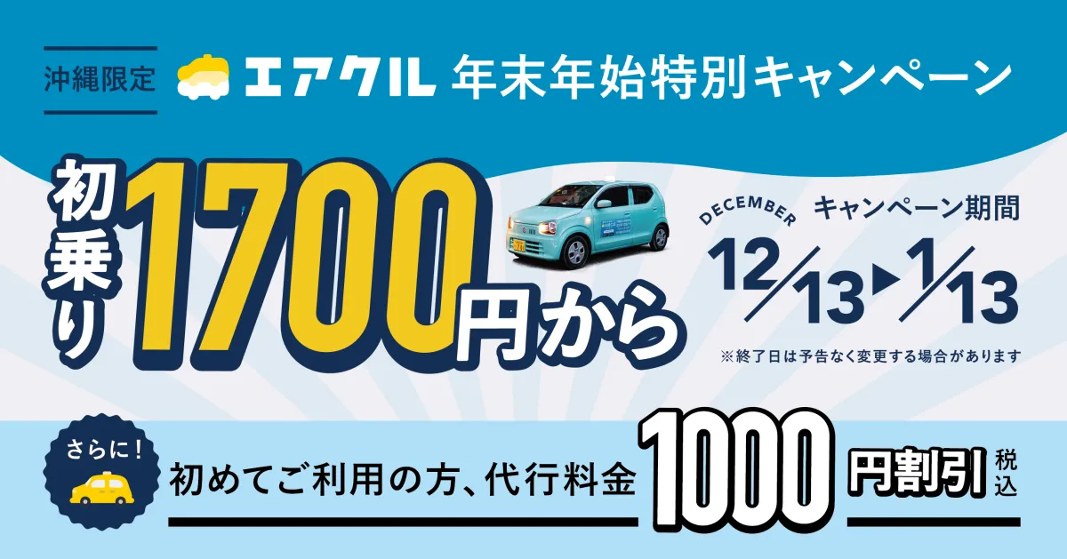 今回の特別割引キャンペーンは、2024年12月13日から2025年1月13日までの期間に実施されます。年末年始の移動はエアクルにお任せして、安心して楽しい時間を過ごしましょう!