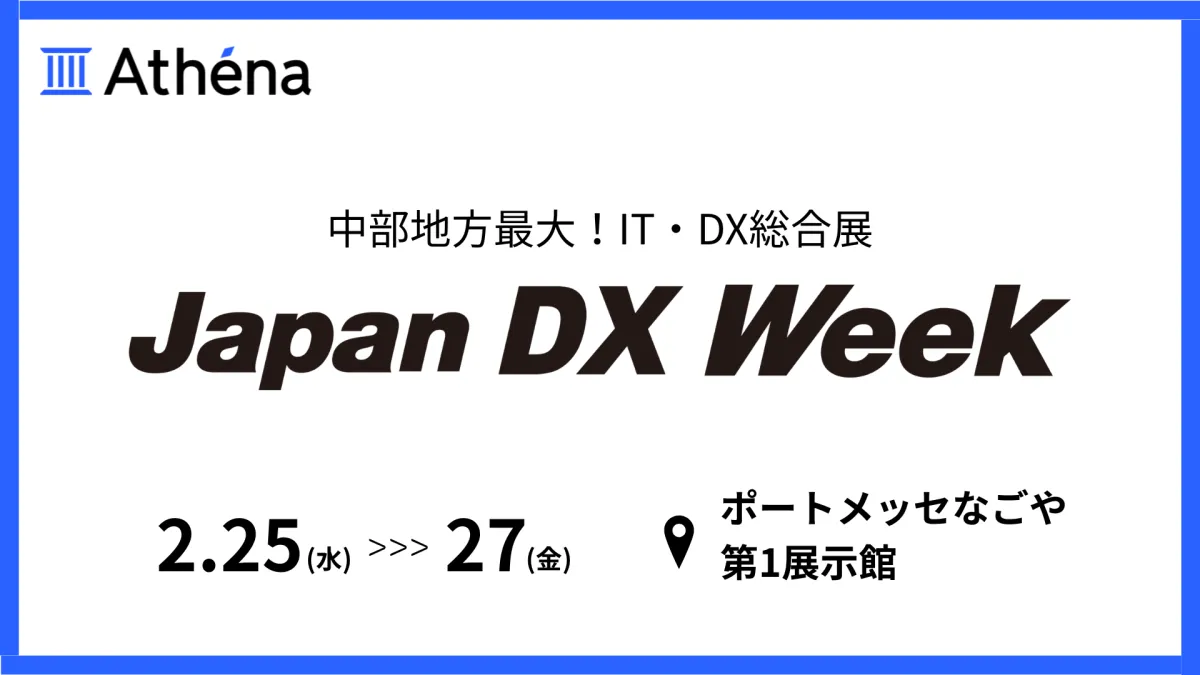 株式会社Athena Technologiesは、2026年2月25日から27日まで開催される「Japan DX Week 2026 名古屋(第10回 AI・業務自動化展)」に出展することをお知らせいたします。この展覧会は、中部地方最大級のIT・DX総合展として、業務効率化やコスト削減、品質向上を目指す企業にとって、最新技術に触れる絶好の機会です。