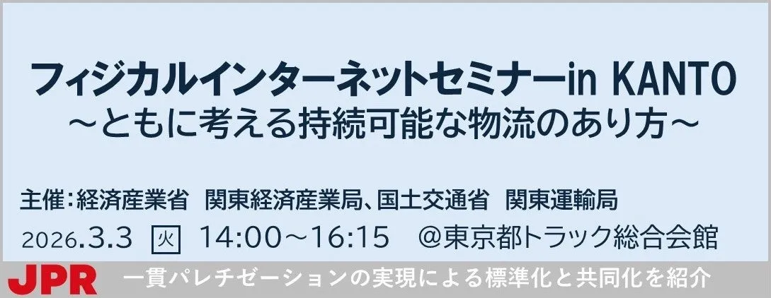 2026年3月3日、経済産業省関東経済産業局と国土交通省関東運輸局が共催する「フィジカルインターネットセミナー in KANTO」が東京都で開催されます。本セミナーは物流業界の持続可能な未来を議論する重要な場となります。また、このセミナーには日本パレットレンタル株式会社(JPR)が登壇し、今後の物流の在り方について意見を交えます。