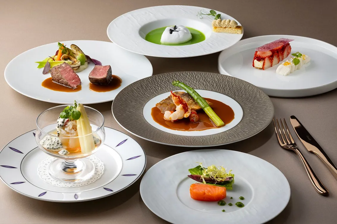 この特別コースは、春の新鮮な食材とエシカルな選択肢が見事に融合した内容。シェフの髙橋克友氏が織りなす料理は、素材本来の味を大切にした逸品ばかり。具体的には、アミューズとして出される『桜鱒のミキュイ 小さなブーケサラダとともに』や、オードブルの『フランス産ホワイトアスパラガスとズワイ蟹のカクテル キャビア入りクリームソース』などがそれにあたります。どの料理もアートのように美しく盛り付けられ、目にも楽しいひと皿となっています。