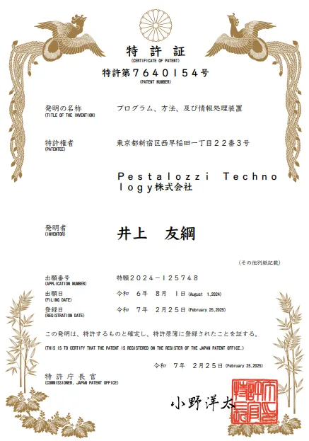 Pestalozzi Technology株式会社が開発した体力テストデジタル集計システム『ALPHA』が、新しく「全国月齢平均」の算出・表示機能を特許取得しました。この革新的な機能は、今後目指す「個別最適な学び」に向けた大きな一歩と言えるでしょう。
