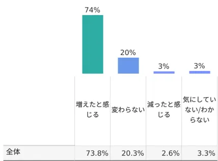 74%の回答者が「異物混入に関するニュースが増えた」と感じており、その影響で