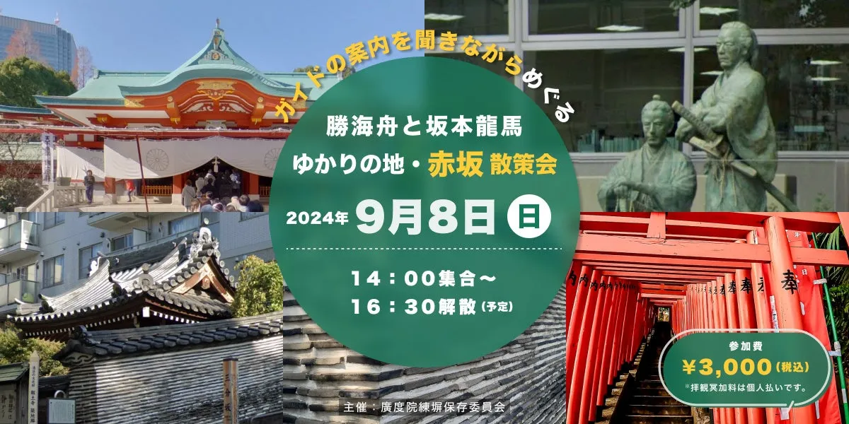 今回のツアーでは、勝海舟と坂本龍馬との関わりが深い赤坂も訪れる。赤坂では、長年勝海舟が住んでいた家や坂本龍馬との出会いを体感できるスポットを巡ります。さらに、江戸時代に築かれた築地塀を見学することで、江戸の文化と風景に対する理解が深まること間違いなし。