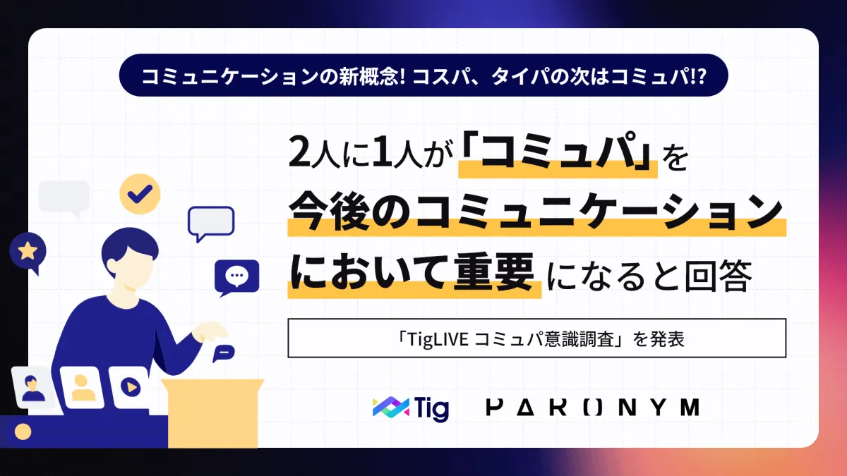 コミュニケーションの新たな指標、「コミュパ(コミュニケーションパフォーマンス)」が、私たちの生活にどのように影響を与えるのでしょうか。パロニム株式会社が実施した「Tig LIVEコミュパ意識調査」の結果を基に、コミュパの意義や私たちの購買行動に及ぼす影響を探ります。