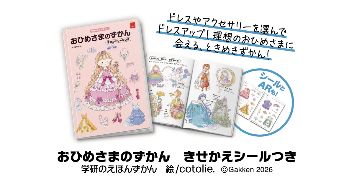 2026年2月13日より、日本全国のマクドナルド(一部店舗を除く)において、憧れのお姫様たちをテーマにした新しいミニ図鑑が登場します。株式会社Gakkenが発行する「学研のえほんずかんおひめさまのずかん」は、マクドナルドのハッピーセットとコラボレーションし、「ほんのハッピーセット」として販売されることが発表されました。