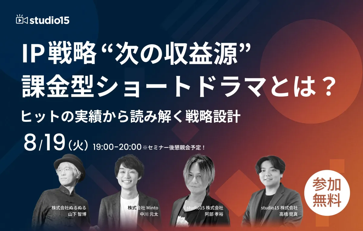 - - 高橋 奨真氏: studio15でショートドラマ事業を率いるマネージャー、人気メディアを成功裏に育て上げた実績を持つ。